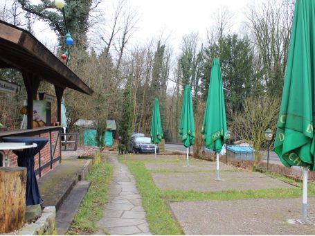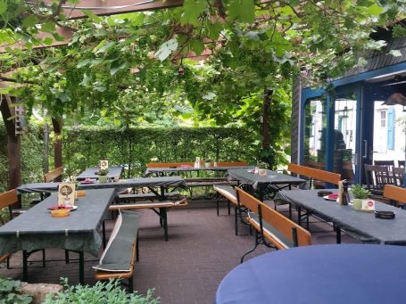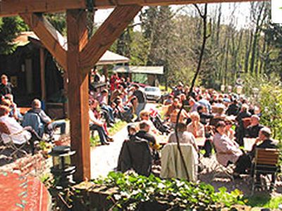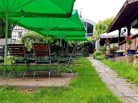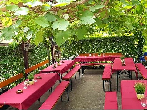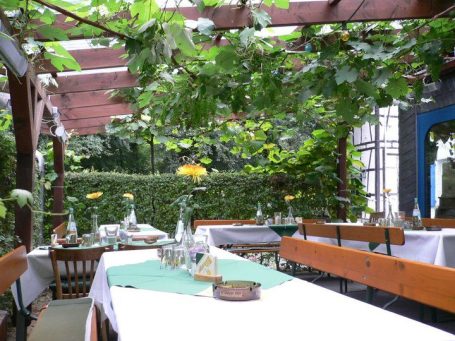 Der Biergarten befindet sich am Waldrand und bietet somit angenehmes Sitzen im Freien.